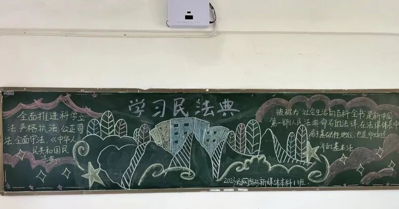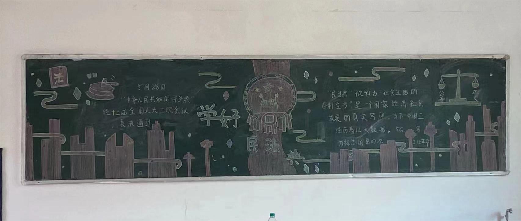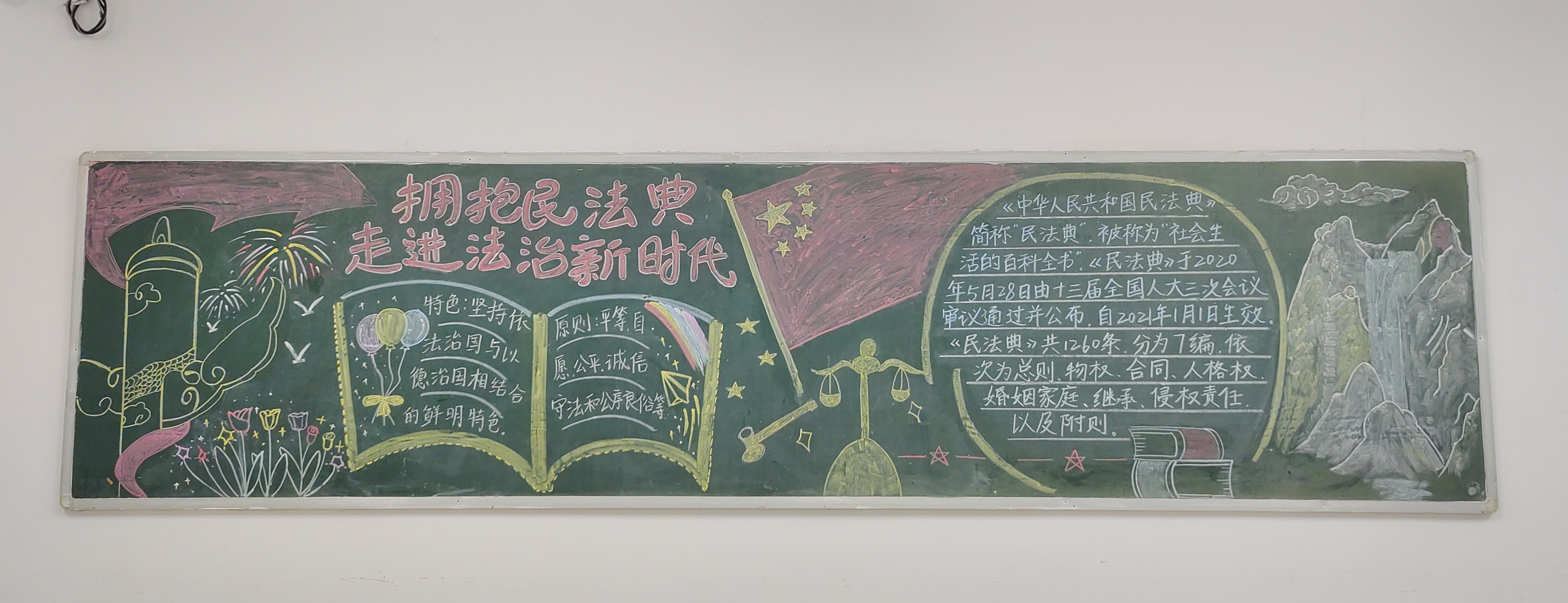 今年5月是第四个“民法典宣传月”,为展现我院学子良好的精神风貌,语言与传播学院组织开展了“学习民法典,守护共成长”为主题的黑板报活动。