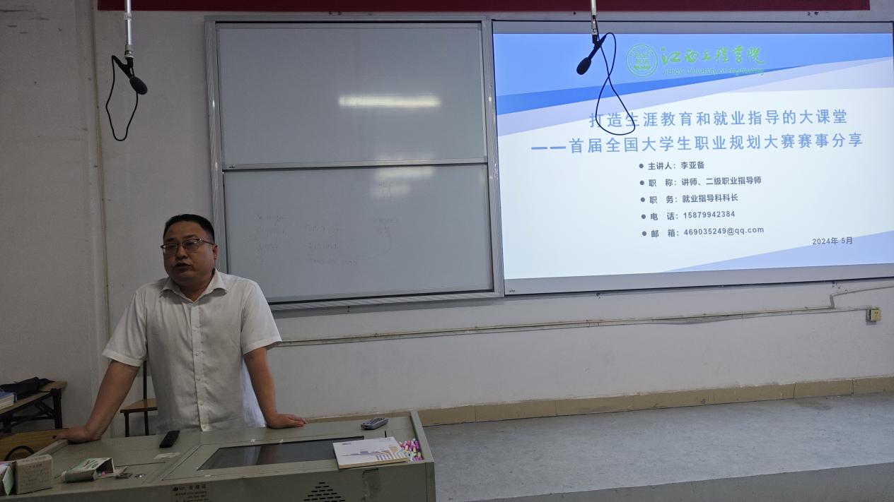 为进一步鼓励广大同学积极参加大学生职业生涯规划大赛,以赛赋能,提高大学生就业、创业与实践能力,我院于5月27日,在D106举行全国大学生职业生涯规划大赛赛事分享大会,此次分享会讲师为二级职业指导师、就业指导科科长李亚备老师,由2023级、2021级全体学生参加。