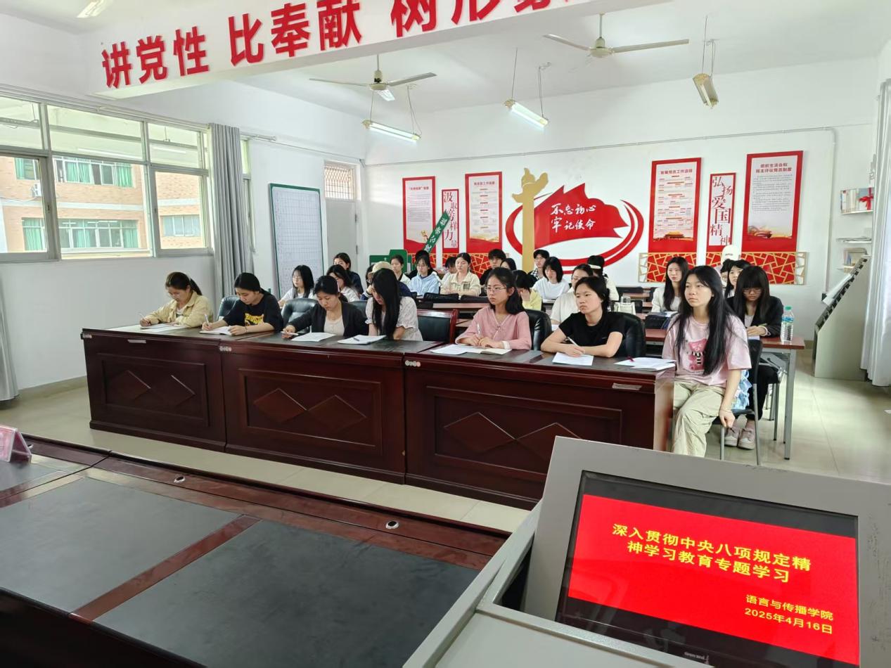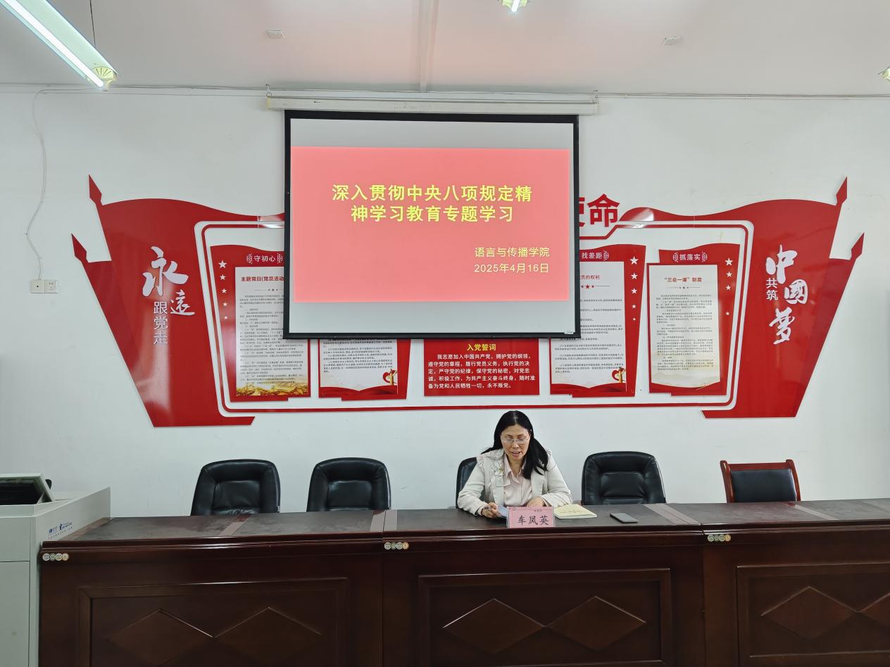 此次专题学习会,犹如一场涤荡心灵的甘霖,为语言与传播学院入党积极分子带来深刻的思想洗礼;又似一声激昂奋进的号角,化作切实有力的行动动员。车凤英院长将以此次学习为契机,持续深化作风建设,以更加坚定的决心、更加有力的举措,进一步营造风清气正、开拓奋进的良好氛围,为学院发展建设提供坚强的纪律保障。