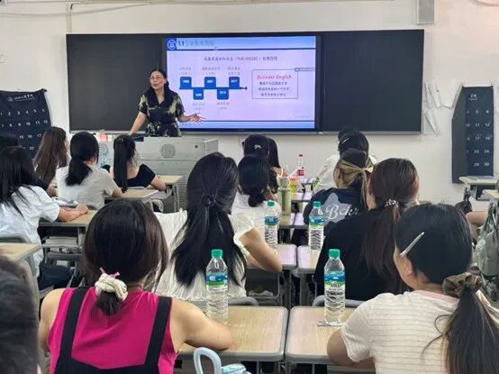 课堂上,院长车凤英先是梳理了商务英语专业的发展历程。从早期的相关专科专业,逐步发展、完善,到如今成为聚焦于外国语言文学类的本科专业,有着清晰且坚实的发展脉络。