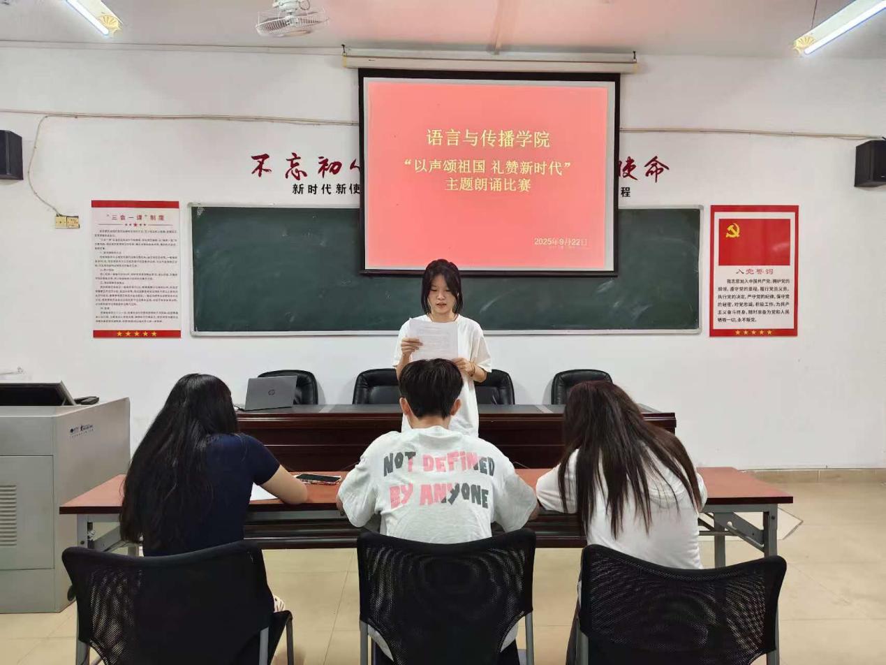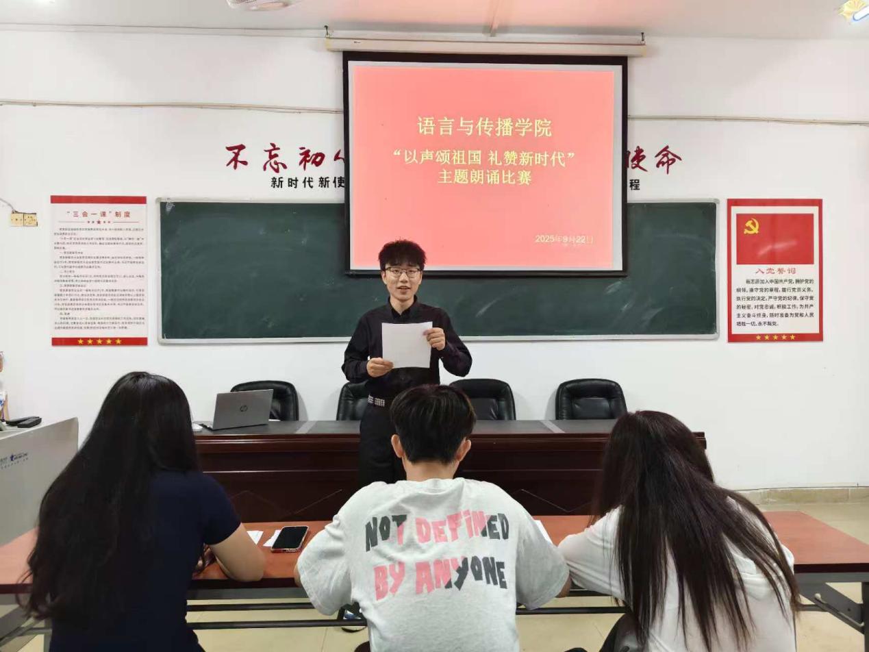 9月22日,语言与传播学院在C201教室成功举办“以声颂祖国,礼赞新时代”主题朗诵比赛。本次活动深度融合学院“北斗星·红传”党建品牌特色,以声音为媒介、以情感为纽带,让红色基因在朗诵声中薪火相传,为新时代青年搭建了抒发爱国情怀的舞台。