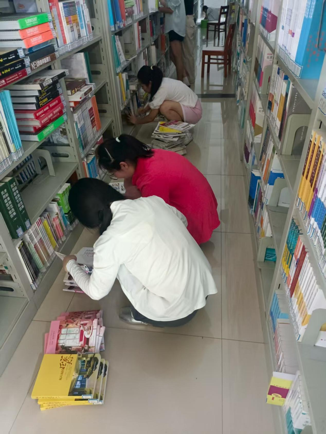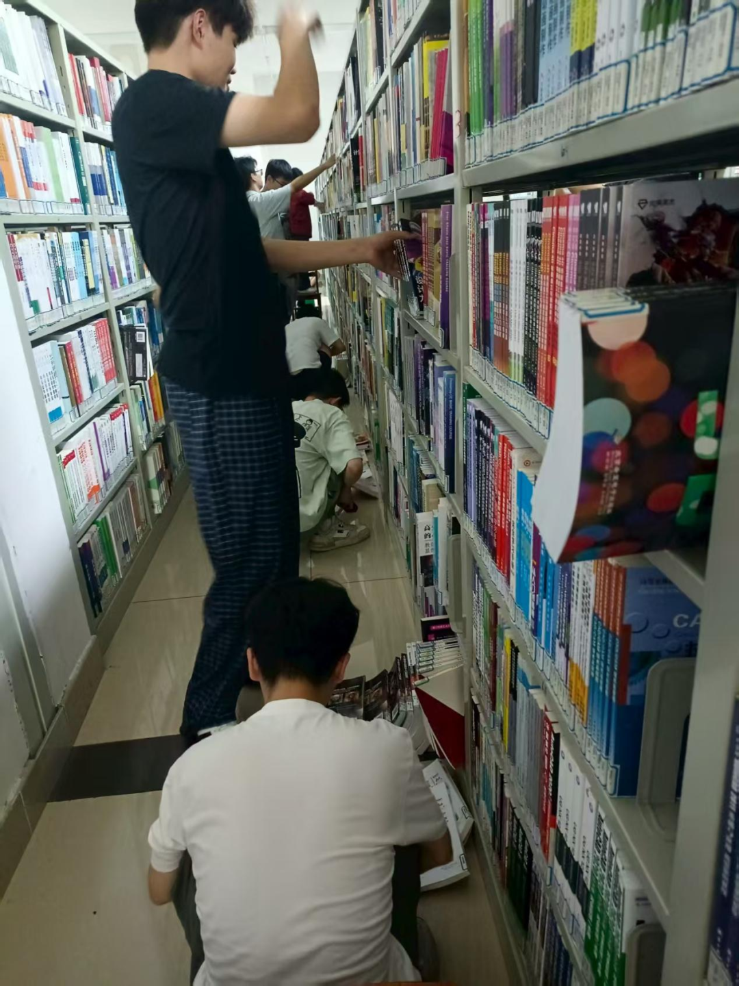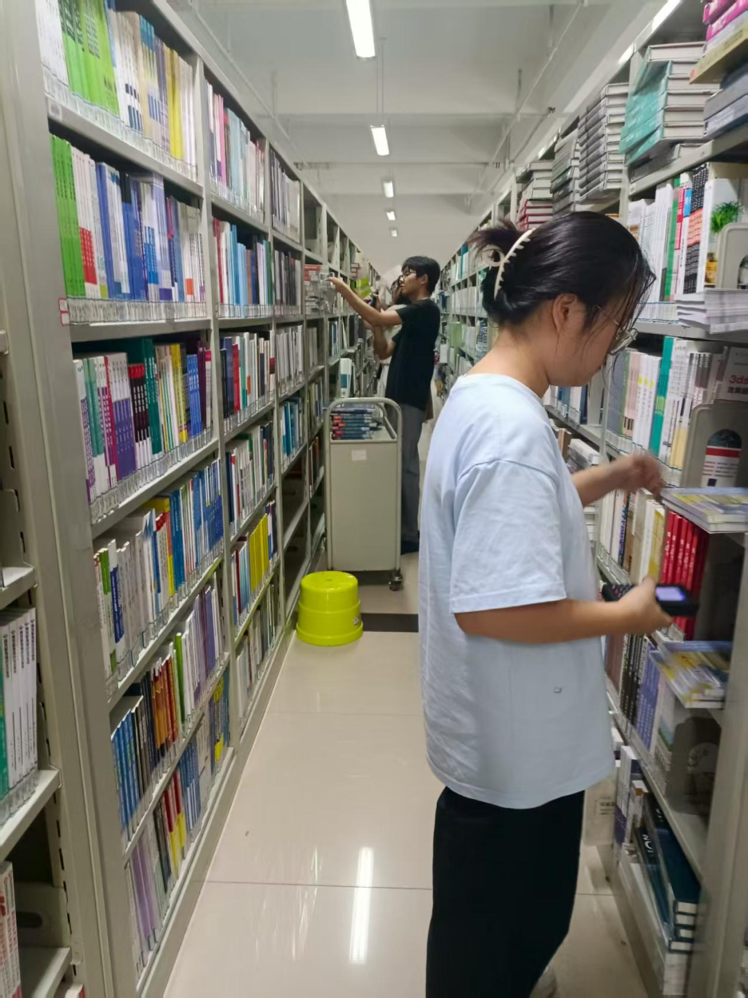 实践过程中,同学们以小组为单位分工协作,迅速投入工作。有的同学负责核对新书信息,仔细检查图书品相与条码的完整性;有的同学专注于扫码录入,确保每本图书的信息准确录入图书馆管理系统。面对数量庞大的图书与繁杂的分类任务,同学们耐心细致、相互配合,即使在整理较高书架时需要反复搬梯、踮脚摆放,也始终保持着饱满的热情,用行动诠释着劳动的意义。