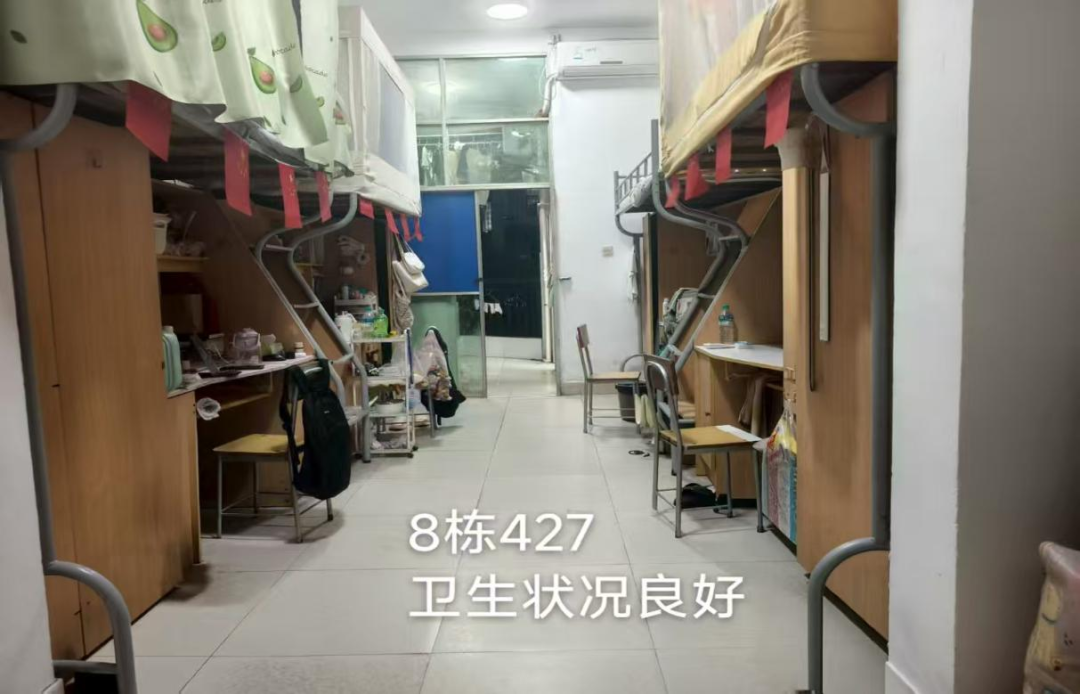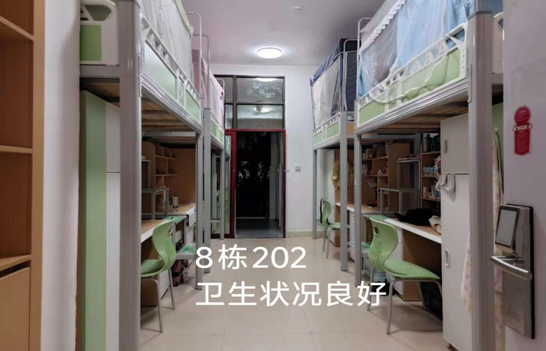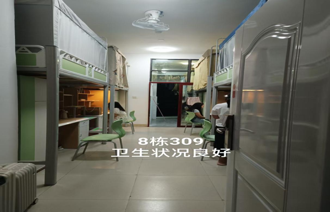 •大部分宿舍的卫生状况良好,地面整洁,床铺整齐,个人物品摆放有序。