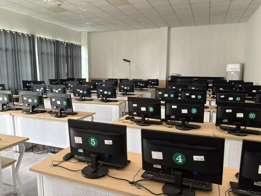 检查组一行先后走访了 S2S503 语音室、S2X118 数字媒体实验室、S3B401 语言自主学习中心等 12 间教学实训场所,围绕“环境安全、设备管理、制度落实、记录规范”四大维度展开细致检查。在现场核查中,检查组对学院实验室管理工作给予充分肯定:各实验室卫生清洁到位,地面无杂物、桌面无堆积,营造了整洁有序的教学环境;语音设备、多媒体控制台、自主学习终端等仪器摆放整齐,线路梳理规范,经现场测试均运行正常,满足实践教学需求;教学日志填写完整规范,实验名称、学时安排、学生分组等关键信息一目了然,安全检查记录、设备维护台账等材料分类归档、齐全可查;实验室安全管理制度张贴醒目,涵盖用电安全、设备操作、应急处置等内容,形成了 “有章可循、有规可依” 的管理体系。
