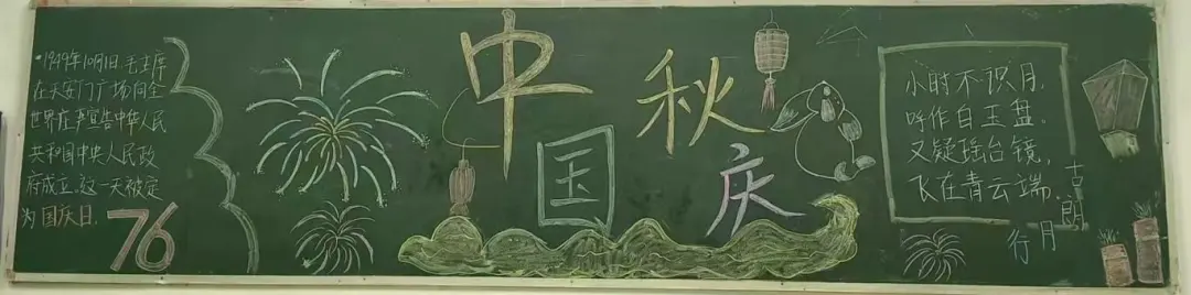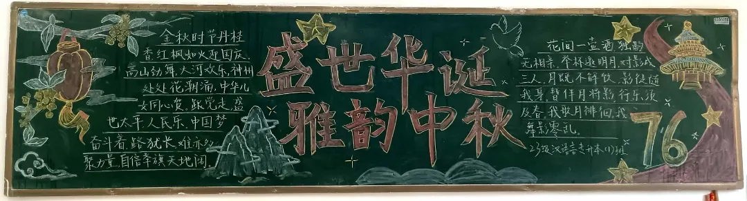 盛世华诞,恰遇中秋佳节,举国同庆。为庆祝新中国76周年华诞与中秋佳节,推进校园文化建设,充分发挥黑板报的宣传教育作用。在国庆节与中秋节来临之际,语言与传播学院举办了“喜迎国庆,欢度中秋”主题黑板报展示活动。