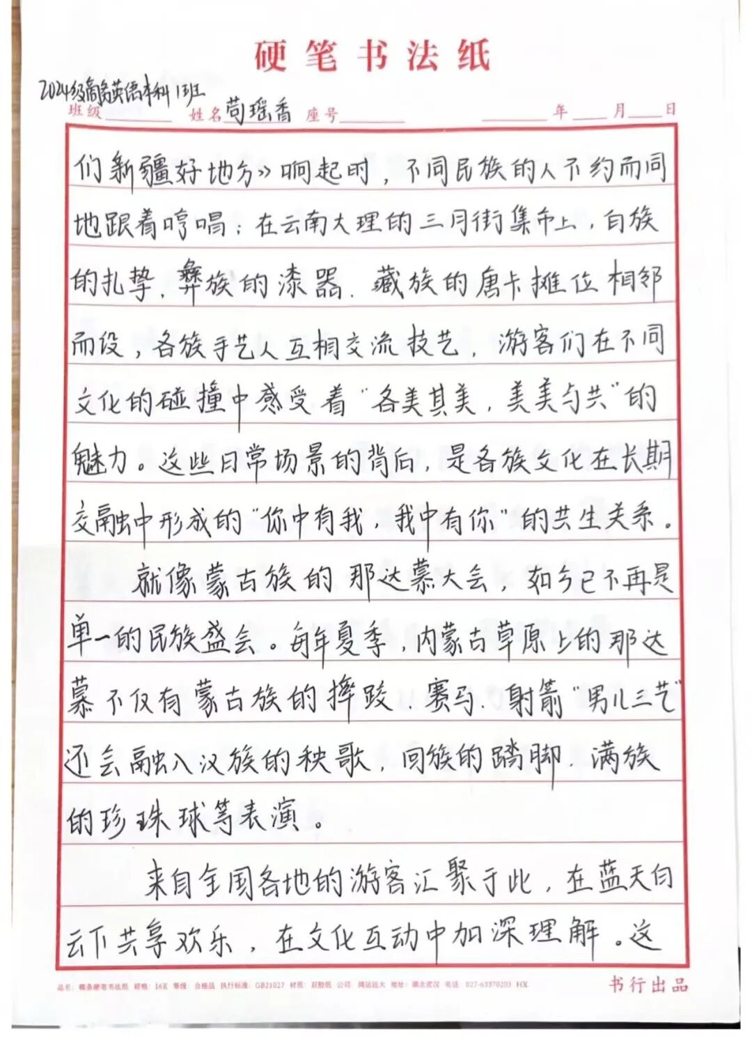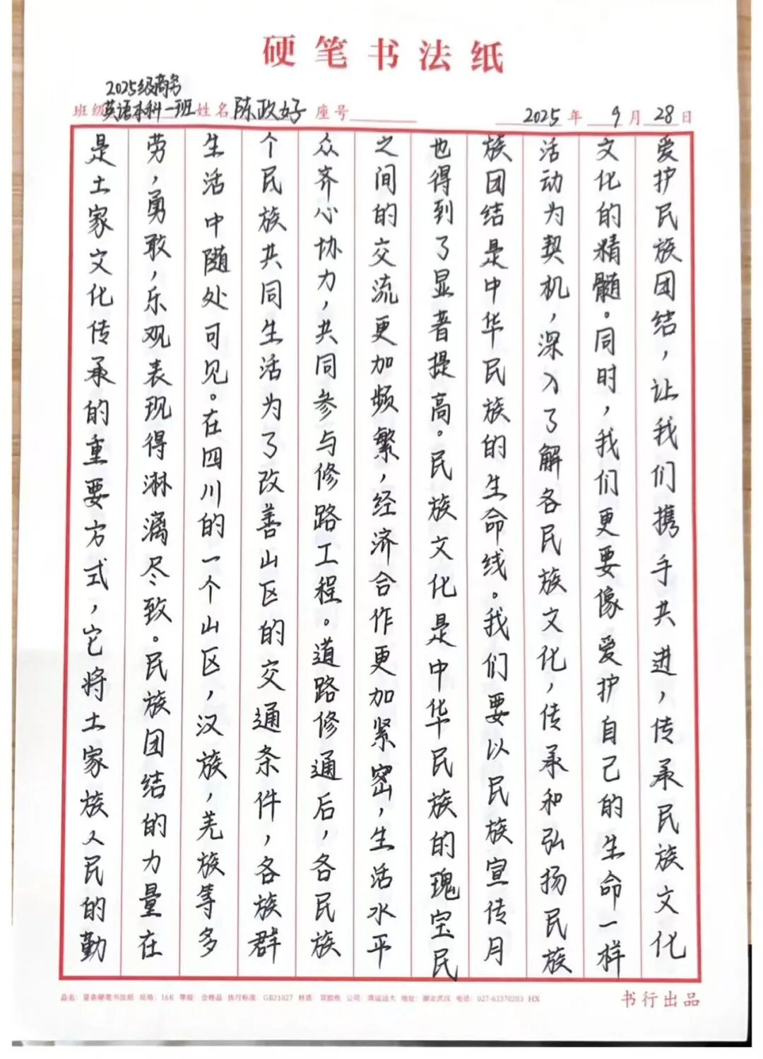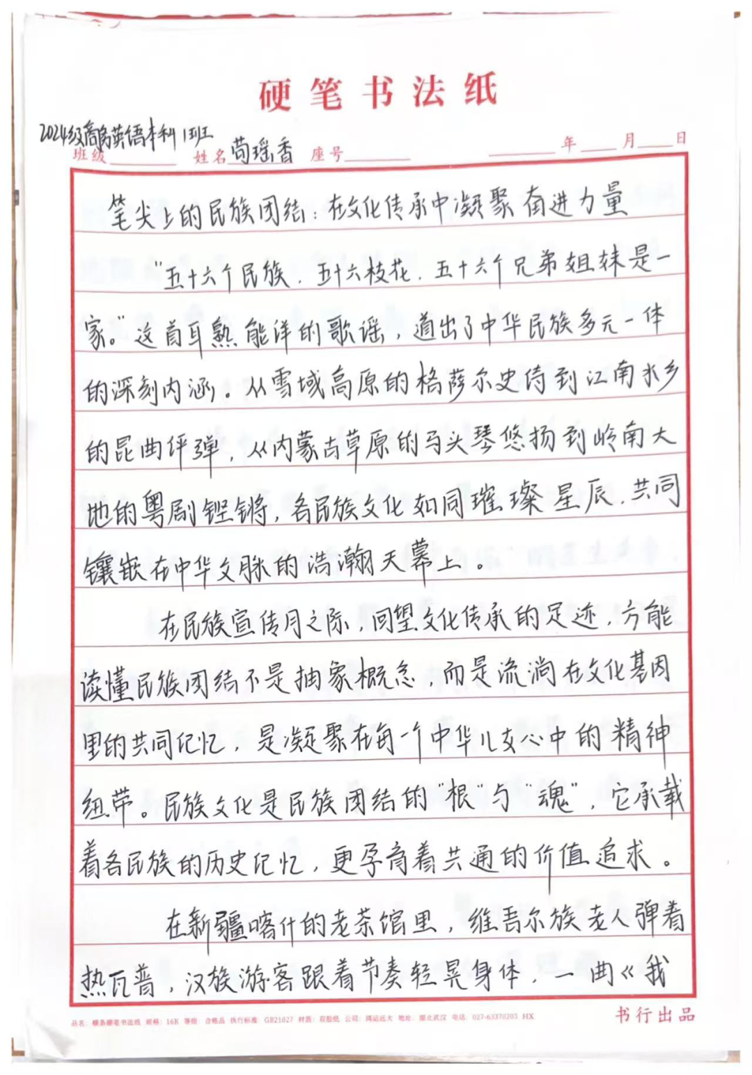 活动启动以来,全院上下积极响应,各专业、各年级学生踊跃投稿,累计收到作品30余篇。字里行间,既有学子记录校园里各民族同学同食共学、互帮互助的温暖日常,也有跨民族寝室、社团成员共同书写的“手拉手、心连心”的青春篇章,每一篇作品都饱含对民族文化的热爱,彰显着学院各民族师生“像石榴籽一样紧紧抱在一起”的凝聚力。