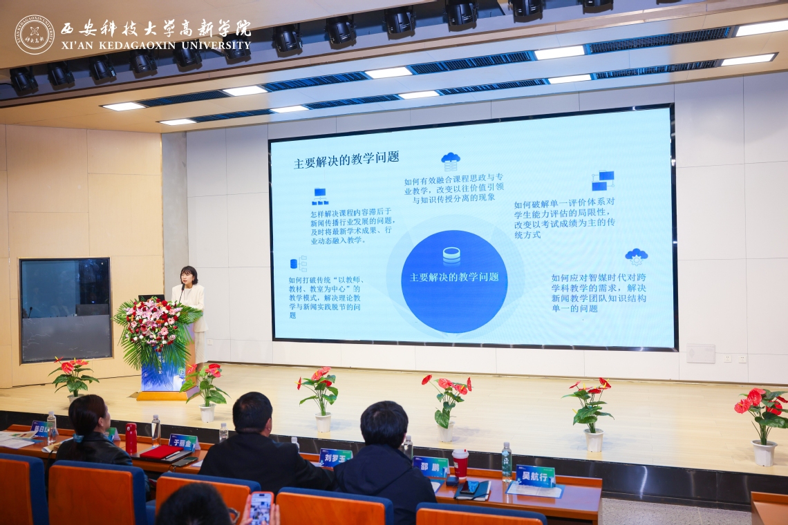 西安交通大学新闻与传播研究所所长李明德教授以《人工智能时代新闻传播教育系统性变革的动力、难点和路向》为题,深入剖析AI 技术对课程设置、教学方法、评价体系的冲击,提出 “技术素养 + 专业能力 + 人文情怀” 三位一体的人才培养框架,并结合西安交大的实践案例,分享了从 “教师主导” 到 “人机协同” 教学模式的转型经验。西北大学新媒体研究院执行院长韩隽教授则聚焦课程体系创新,详细介绍《新闻传播专业全媒体课程教学 3.0 体系创建与实践》,通过 “基础模块 + 特色方向 + 实战项目” 的课程架构,展现如何将 AI 工具应用、数据新闻制作等前沿内容融入日常教学。