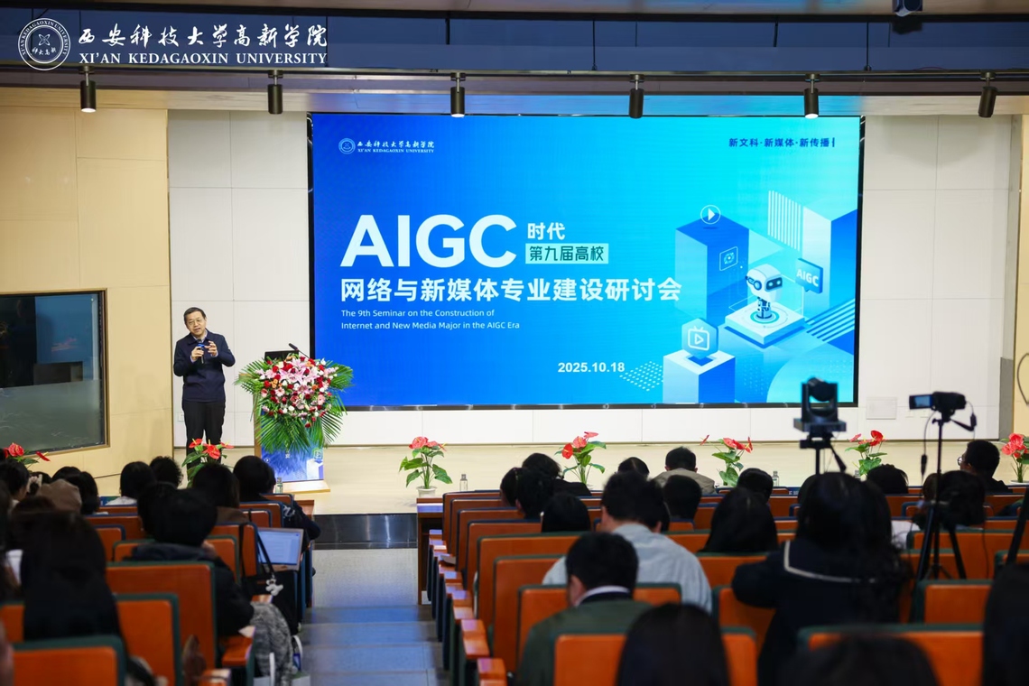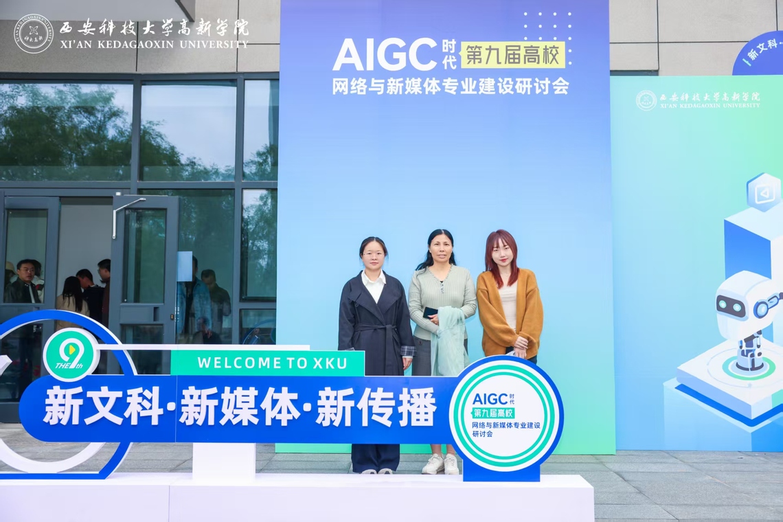 为紧跟AIGC 技术发展浪潮,推进网络与新媒体专业建设创新,探索数智时代传媒人才培养新路径,2025 年 10 月 17 日至 19 日,我院院长车凤英教授、网络与新媒体专业教研室教师吕斯凡、朱筱珂赴西安参加第九届高校网络与新媒体专业建设研讨会。本次会议由西安科技大学高新学院联合人民邮电出版社主办,汇聚全国 80 余所高校的传媒学院负责人、专业教师及行业代表,围绕 AI 赋能教育变革、产教融合实践、课程体系创新等核心议题展开深度研讨,议程聚焦专业建设核心需求。