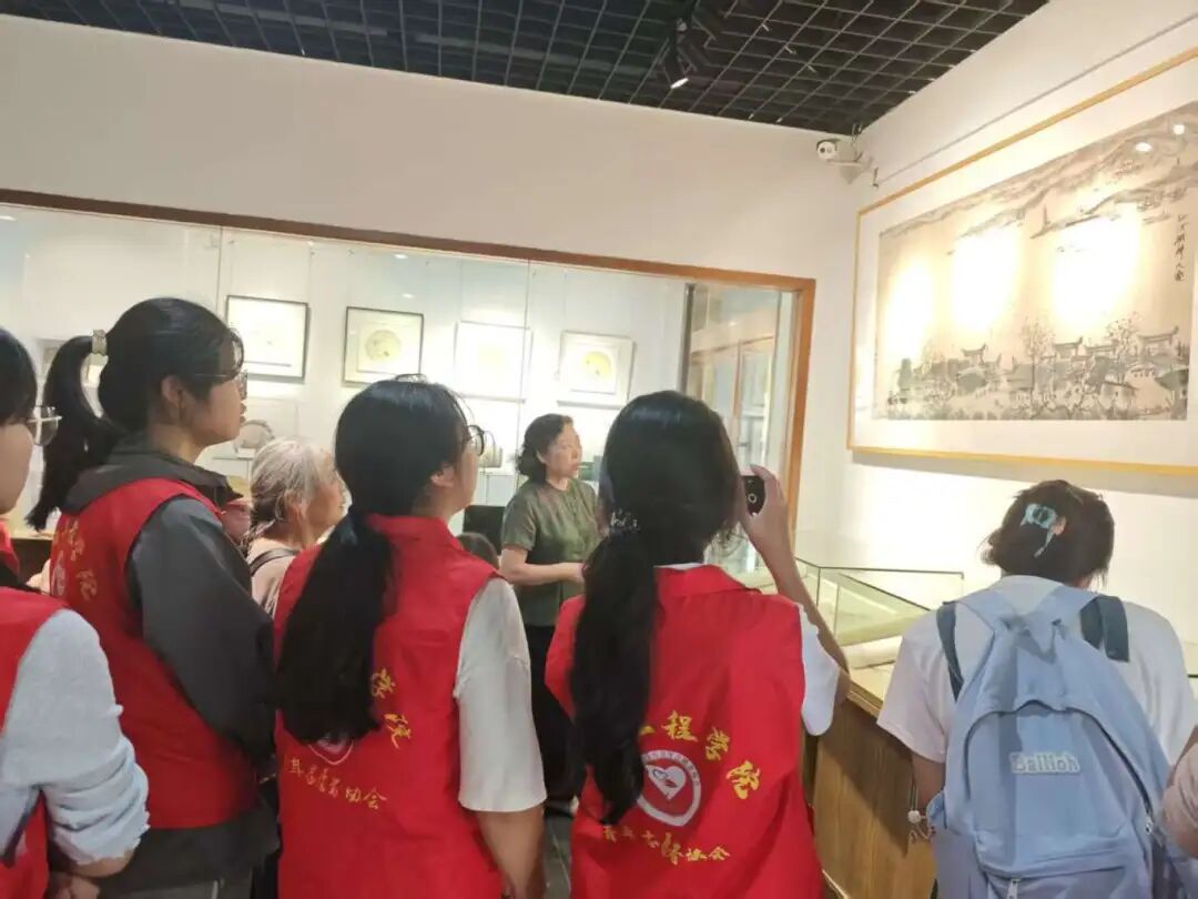 活动当天,夏布绣博物馆馆长亲自接待了青协部成员一行,并担任全程讲解向导。在馆长的带领下,大家依次参观了夏布绣历史沿革展区、精品技艺展区及传承创新展区。从古代夏布的纺织工艺到现代夏布绣的艺术突破,从馆藏的明清时期夏布绣珍品到当代大师的获奖佳作,馆长结合实物展品与生动案例,详细解读了夏布绣“轻如蝉翼、薄如宣纸、软如罗绢”的独特特质,以及其在图案设计、针法运用中蕴含的传统文化内涵。当讲到夏布绣如何从传统民间技艺走向国际舞台,成为新余文化名片时,在场成员纷纷为这项非遗技艺的生命力点赞。
