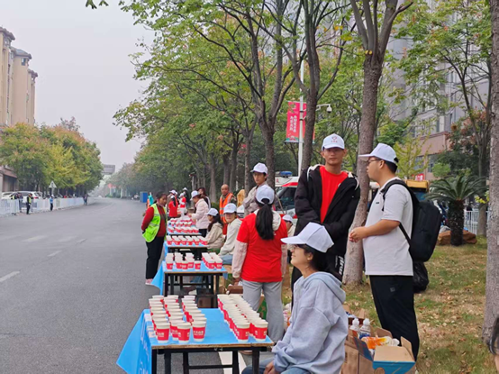 比赛当天,天刚蒙蒙亮,志愿者们便已整装待发。统一的白色志愿帽上,红色爱心标志熠熠生辉;红色志愿服在秋日的微风中,成为赛道旁最亮眼的风景。