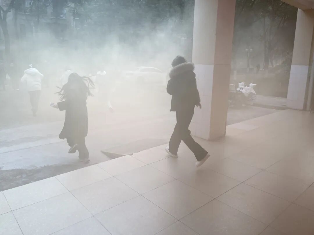 本次演练全程不提前告知具体时间与流程,随着校园内消防警报突然响起,“无脚本”演练正式启动。教学楼内浓烟模拟装置启动,现场瞬间营造出真实的火灾突发氛围。在值班老师、辅导员及安全员的快速引导下,大家迅速用湿毛巾捂住口鼻、弯腰低姿,按指定疏散路线快速有序地向操场指定集结点撤离。整个疏散过程紧凑高效,仅短短几分钟,我院全体师生便安全抵达集结区域。