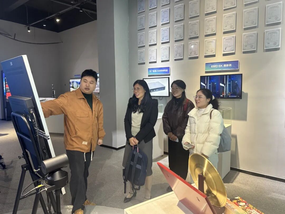 在宇科精密科技有限公司,业务主管胡欣热情接待了学院一行,详细介绍了公司的发展历程、业务范围及人才需求,并表示期待与学院在人才培养、实习实训等方面开展深度合作。在江西华广电影视科技有限公司,董事长袁军接待交流,双方围绕影视制作、文化传播、新媒体运营等领域的校企协作进行了深入探讨,并进步深化共建实习基地、开展项目合作。