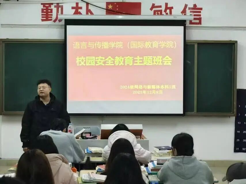 安全无小事,防患未然是关键。近日,语言与传播学院(国际教育学院)各班级集中开展校园安全主题班会,各班班主任围绕“校园安全是学习生活底线”的核心,系统强调安全的重要性,覆盖消防安全、用电安全、防诈骗、出行安全等多维度内容:从宿舍禁用大功率电器、人走断电的用电规范,到网络诈骗的识别技巧,再到出行安全的细节提醒,让“安全无小事”的意识深入每位同学心中,为同学们送上实用的安全“必修课”。