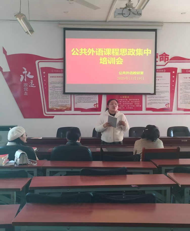 为深入落实立德树人根本任务,破解公共外语课程思政融入教学的实践难题,提升应用型人才培养质量,2025年11月19日,我院公共外语教研室在C401活动室举办公共外语课程思政集中培训会。公共外语教研室全体教师参加会议,会议由教研室主任胡金主持。