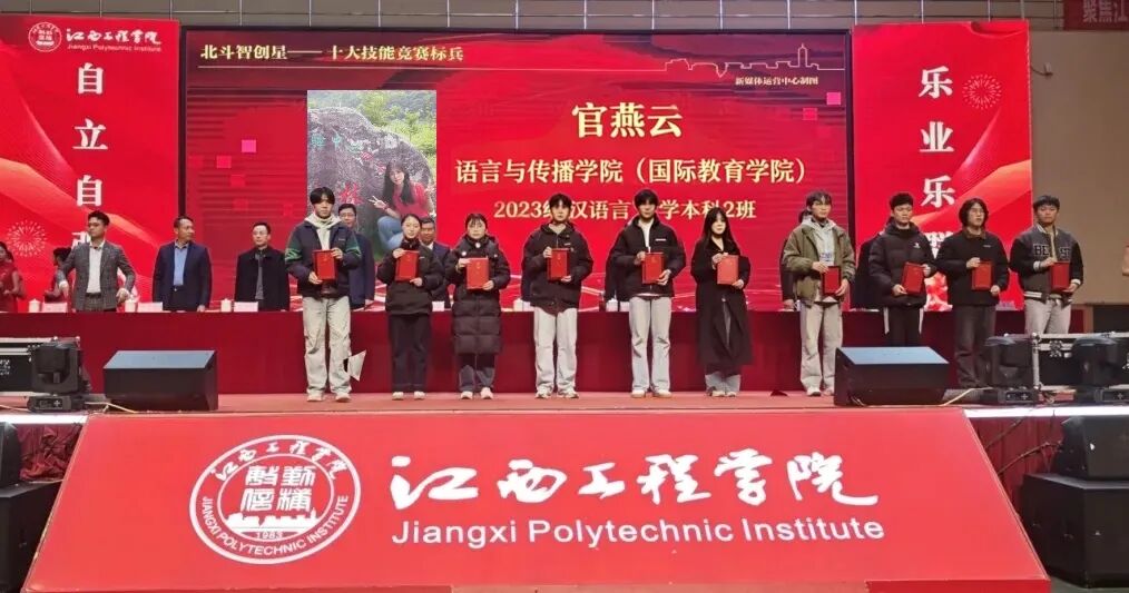 2026年的脚步悄然临近,回望2025年,语言与传播学院(国际教育学院)的师生们以勤勉务实的态度深耕学业、以锐意创新的精神投身实践,在学科竞赛、校园建设、志愿服务等多个领域交出了亮眼答卷。为表彰先进、树立标杆,江西工程学院于12月29日下午在天工校区体育馆举办辞旧暨表彰大会,语言与传播学院(国际教育学院)学子凭借突出表现,在多个奖项评选中脱颖而出,绽放青春光彩。