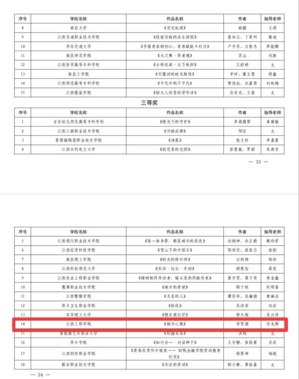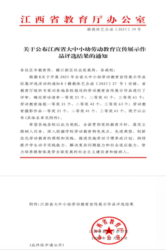 喜报|我院学子在2025年江西省大中小幼劳动教育宣传展示评选中获三等奖