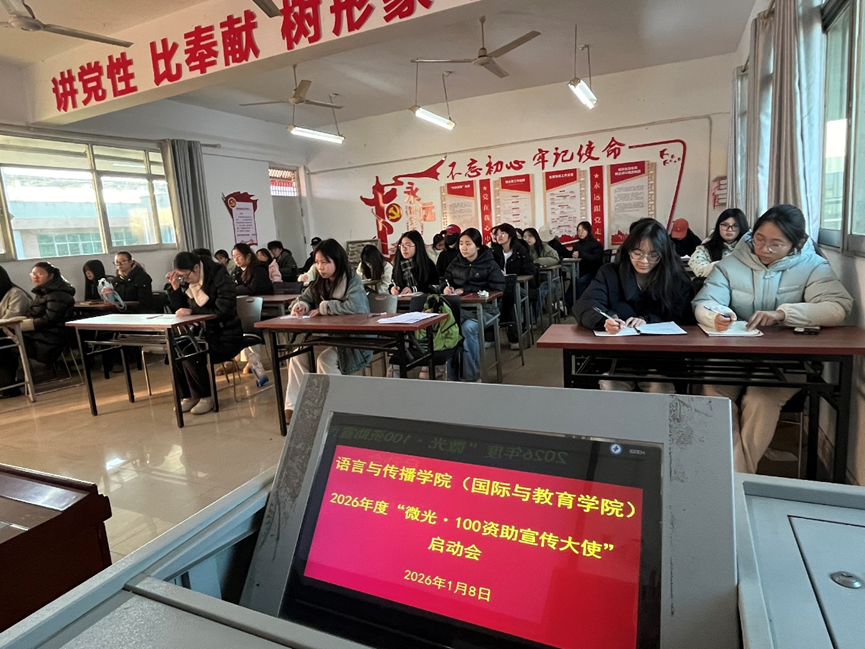 感恩同心,励志同行语言与传播学院(国际教育学院)开展2026年度“微光·100资助宣传大使”启动会