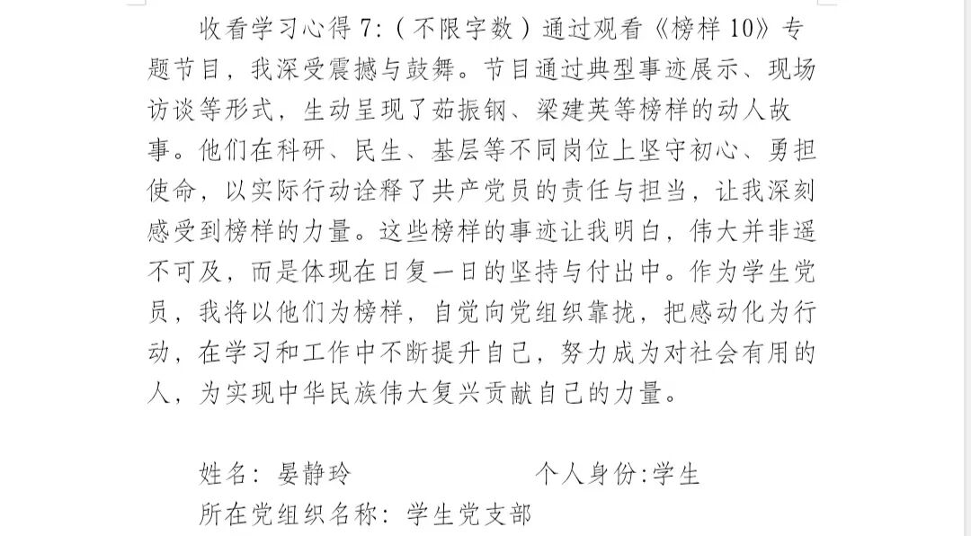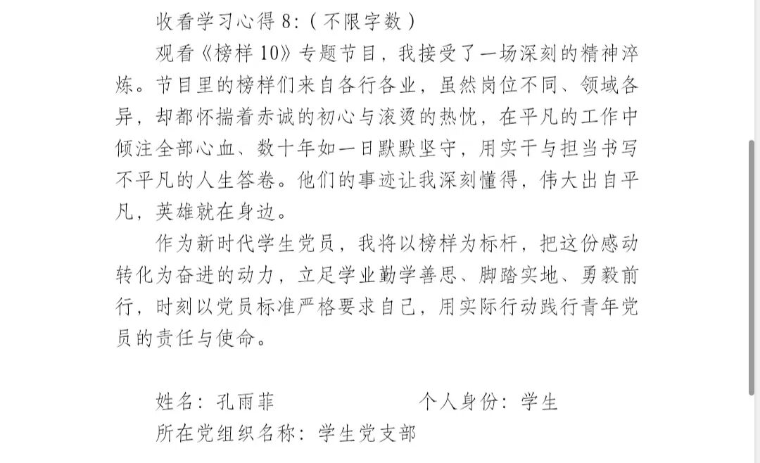 观看结束后,师生党员们纷纷结合自身实际撰写心得体会,分享感悟与收获。