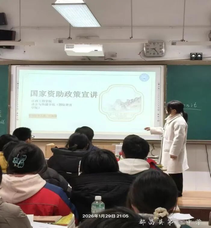 2026年1月29日晚,我在高一(四)班的教室里开展了“国家资助政策宣讲”主题班会,教室里坐满了正值青春年华、对大学充满憧憬的同学们。