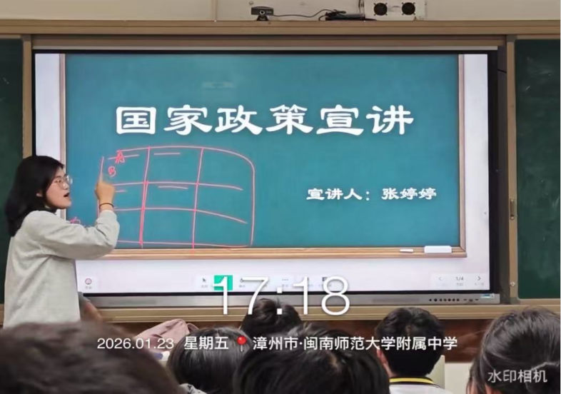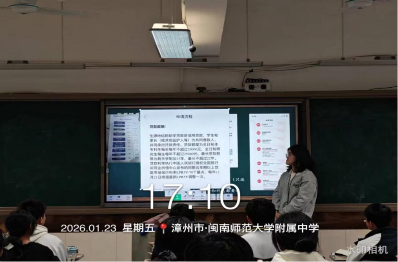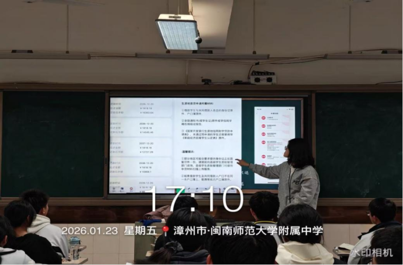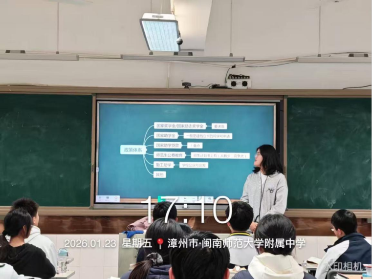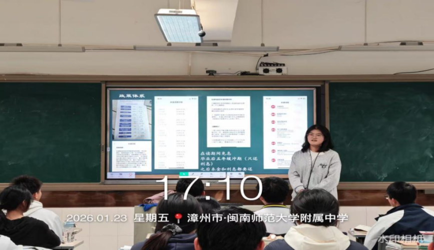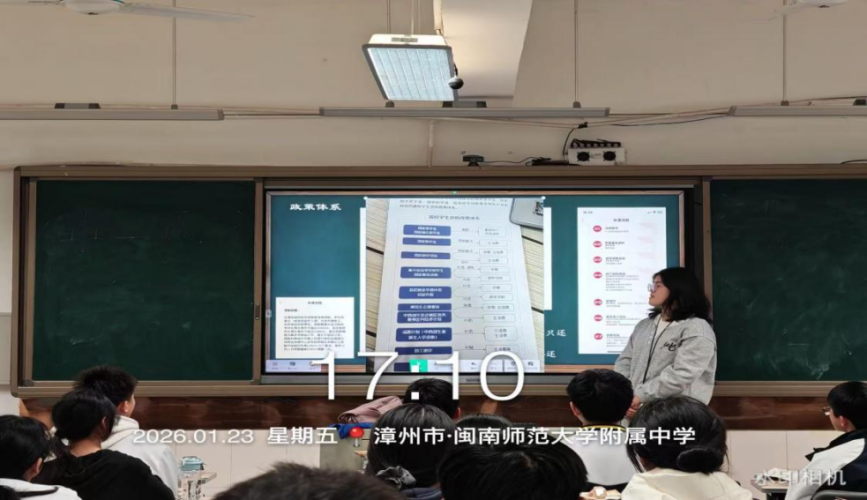 2026年1月23日,星期五,母校的学弟学妹们再过半个月就要迎来期末考试,利用学弟学妹们周五班会课的时间,我前往漳州市闽南师范大学附属中学(漳州二中),开展以“资助育人,筑梦飞翔”为主题的高校资助政策宣讲活动,旨在破解他们对大学费用的焦虑,让每一位心怀理想的学子都能安心备考、无畏追梦。