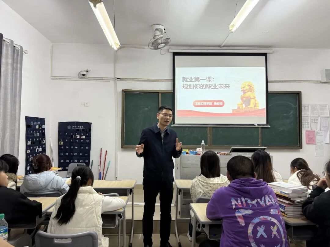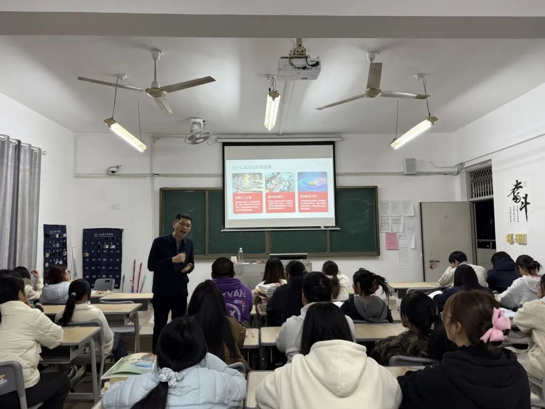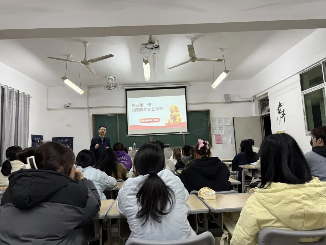 课上,乐俊杰从认识就业、学校就业支持、职业发展路径三个方面展开讲解。他指出,就业是实现个人价值、提升综合能力的重要途径,早期就业体验更能帮助同学们找准职业方向,希望大家从入学开始树立“早规划、早准备、早行动”的就业理念。