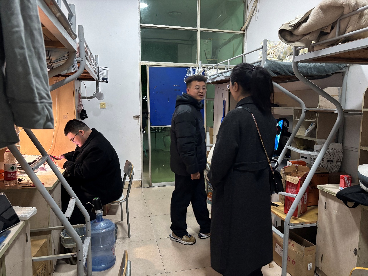 此次查寝工作是学院“北斗星·红传”党建品牌的生动实践,也是学院落实“三全育人”理念的重要举措,通过“下沉式”管理实现了安全教育与人文关怀的有机结合。谢丽丽书记表示,学院将通过常态化宿舍走访,将党建引领与安全教育、学风建设深度融合,打造“安全有保障、情感有依托、成长有指引”的育人空间。学生们纷纷表示:“学院的关怀如北斗星光,让我们在异乡也能感受到家的温暖。”