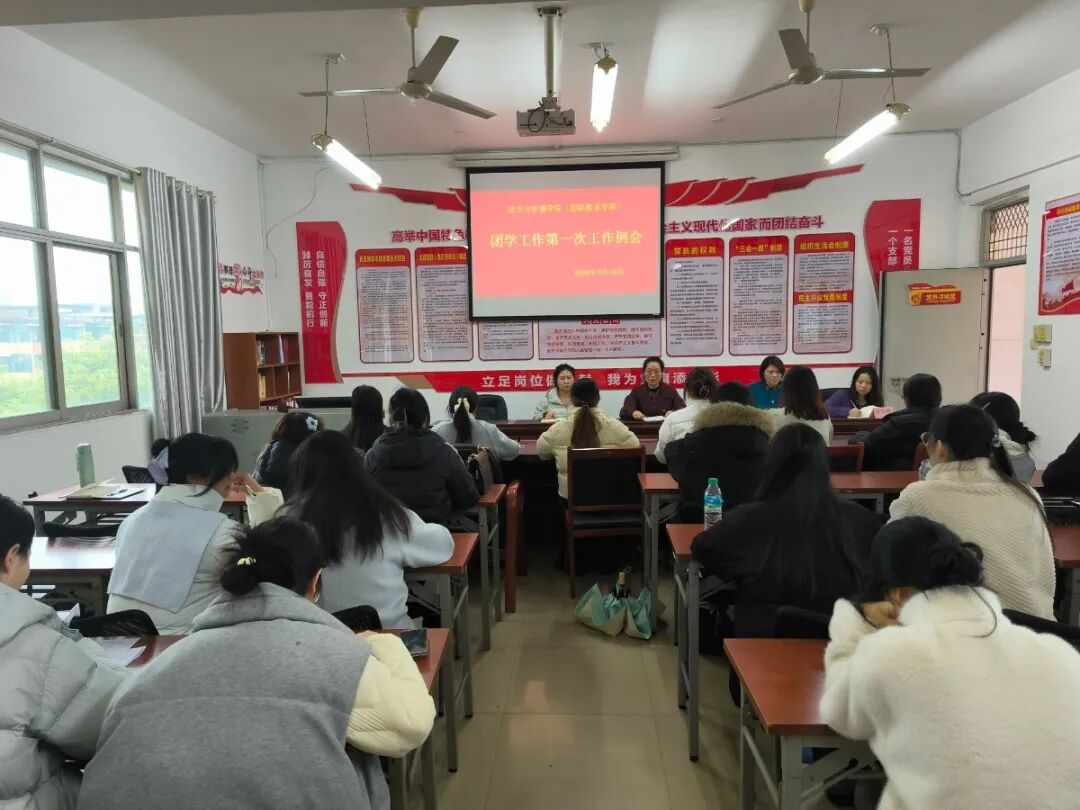 新学期启航之际,为统一思想、凝聚共识,系统部署本年度团学工作,2026年3月18日,语言与传播学院(国际教育学院)召开了新学期首次团学工作例会。学院党总支书记谢丽丽、团总支书记胡金梅与全体团学干部齐聚一堂,共话团学发展。会议由团总支书记胡金梅主持。