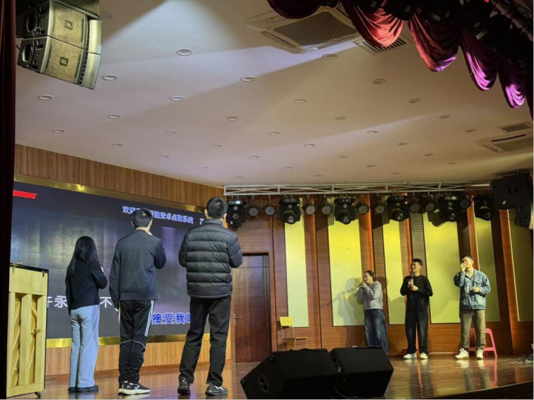 活动伊始,活力四射的拉丁舞表演惊艳开场,灵动的舞步、昂扬的姿态瞬间点燃全场氛围,为整场团建活动拉开了热烈序幕。随后,学校创始人、理事杨名权登台发表讲话,向全体教师致以最诚挚的问候与祝福。杨理事强调,学校将始终把教师权益放在首位,切实保障教师待遇,以实打实的教学实绩强化激励机制,让每一份付出都有回响、每一份坚守都有回报。围绕本科教学合格评估这一核心任务,他号召全院上下同心聚力、抓实落细各项工作,以优质的教学质量、扎实的育人成效,为学校高质量发展注入强劲动力。讲话最后,杨理事预祝本次团建活动圆满成功,祝愿全体教师工作顺遂、阖家幸福,尽情享受这场属于教师的欢乐盛宴。讲话结束后,杨理事登台献唱《把根留住》,深情的演唱赢得全场阵阵掌声,将现场氛围推向高潮。