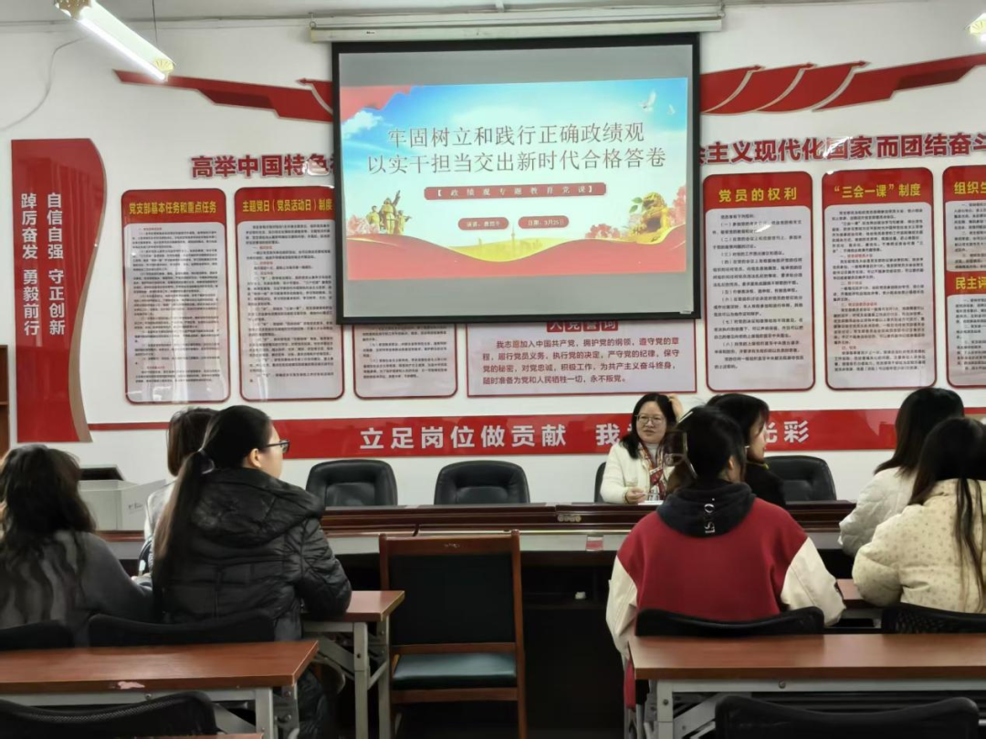 授课中,学生党支部书记傅煜平结合鲜活案例,引导党员们深刻认识到,作为新时代学生党员,树立正确政绩观,就是要立足学生本职,把“政绩”体现在学业精进、服务同学、担当奉献上:在学习上,以过硬专业素养筑牢成长根基;在工作中,以务实作风服务师生、助力集体发展;在生活里,以先锋模范作用传递青春正能量,坚决杜绝“重痕迹、轻实效”“重表态、轻落实”的错误倾向,用实干实绩彰显党员本色。