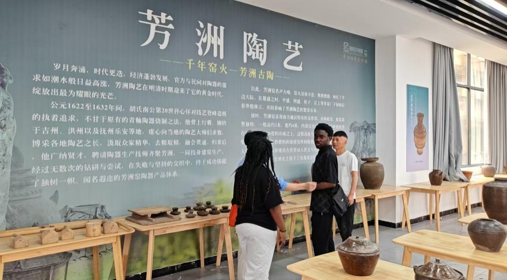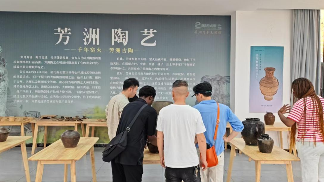 随后,师生一行走进珠珊镇陶艺文化馆,开启了一场与传统工艺的深度对话。在非遗传承人的细致讲解与引导下,留学生们通过丰富的实物展陈与图文资料,系统了解了新余陶艺源远流长的历史脉络、精湛繁复的制作工艺及其深厚的文化底蕴。从一抔泥土到一件艺术品,选泥、拉坯、雕刻、上釉、烧制的每一道工序,都凝聚着世代匠人的智慧与坚守。留学生们沉浸其中,仔细观摩传统工具的操作,聆听技艺传承背后的故事,在静态观赏与动态体验中,充分领略了中华优秀传统文化守正创新、历久弥新的博大精深。