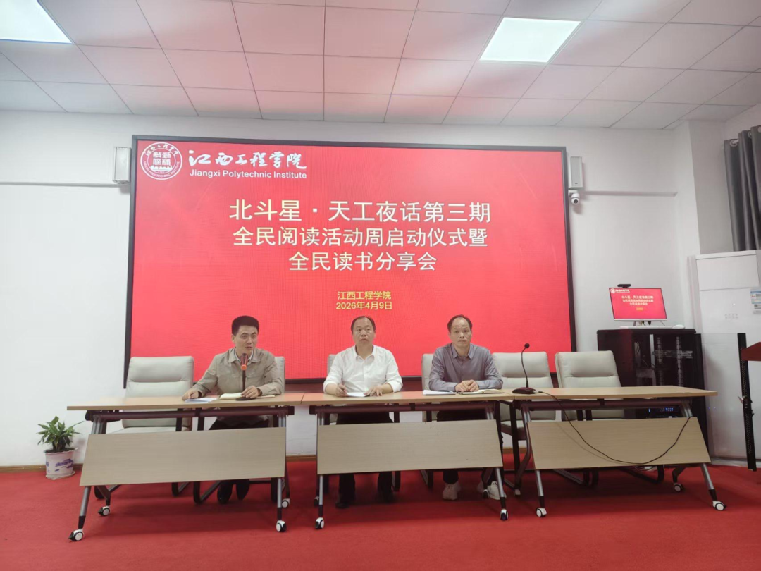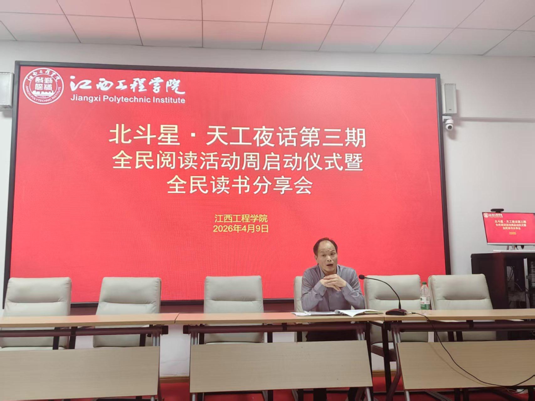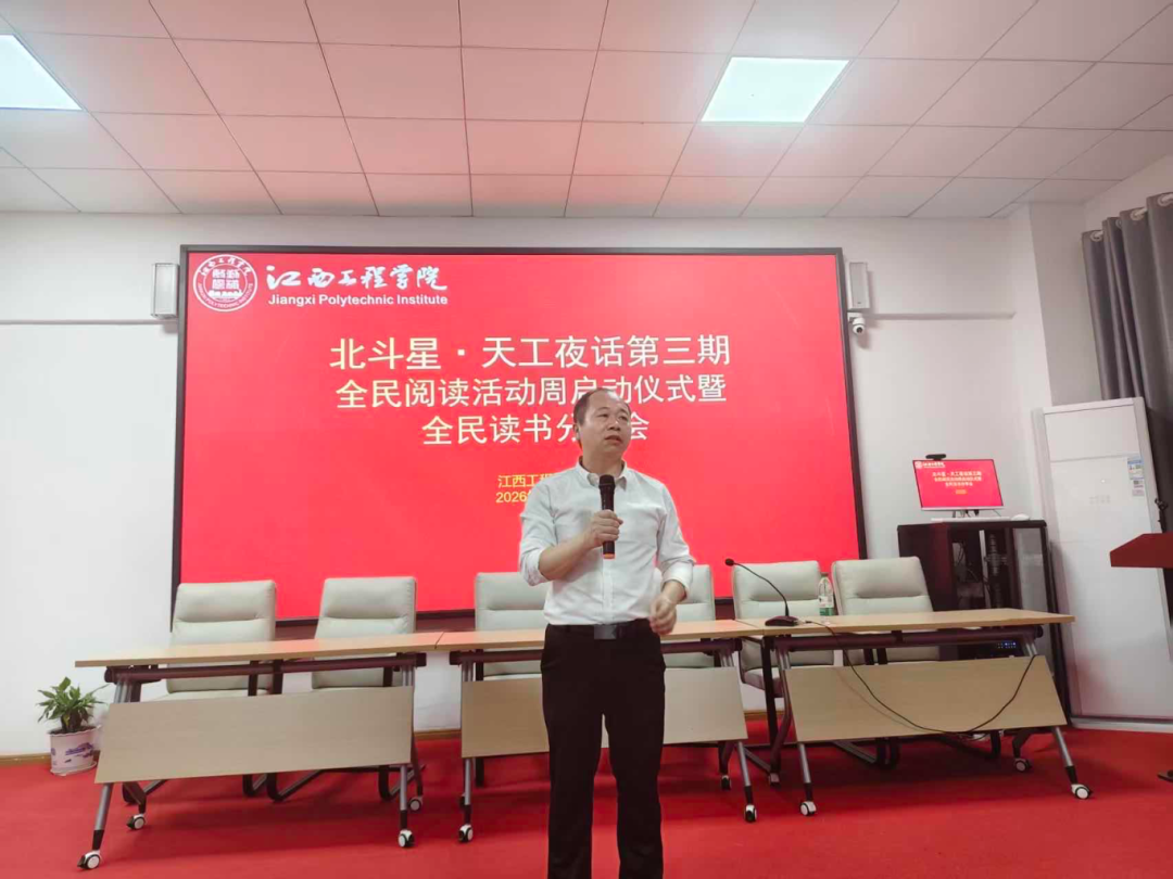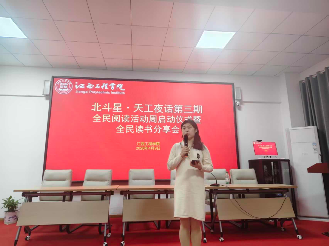 为深入推进全民阅读,营造浓厚的校园读书氛围,4月9日,江西工程学院举办“北斗星·天工夜话”第三期全民阅读活动周启动仪式暨全民读书分享会。由我校图书馆馆长彭凌华主持,我院学子积极参与,师生共赴一场书香之约。