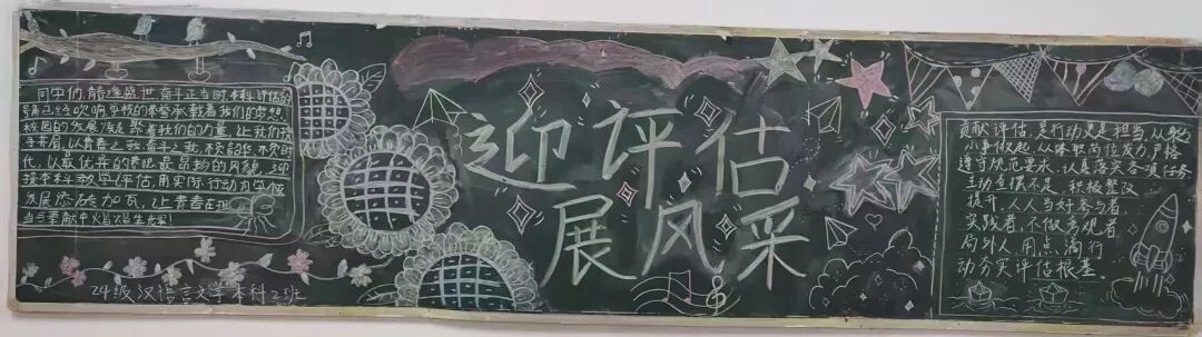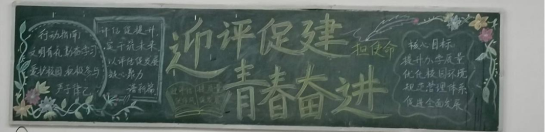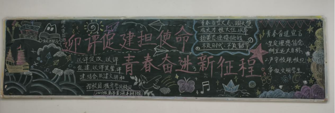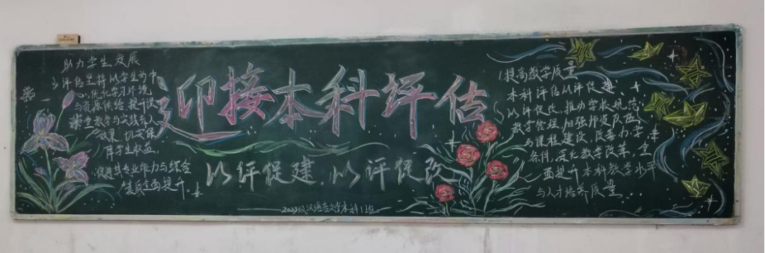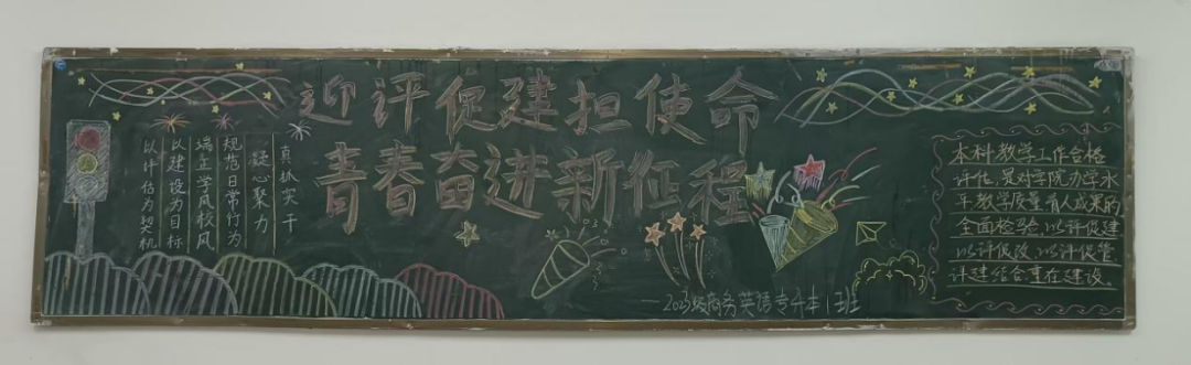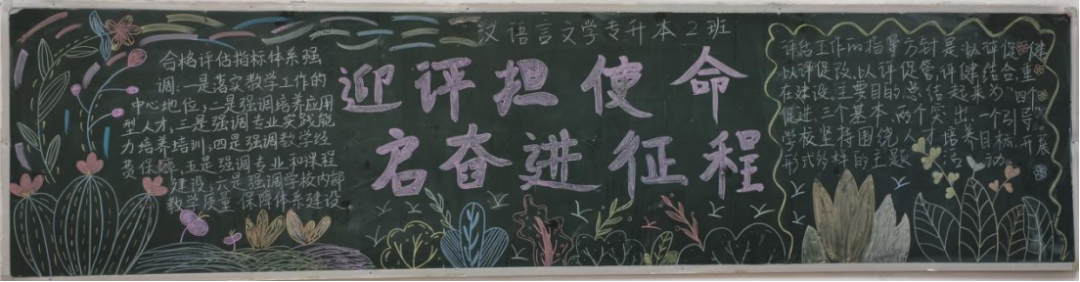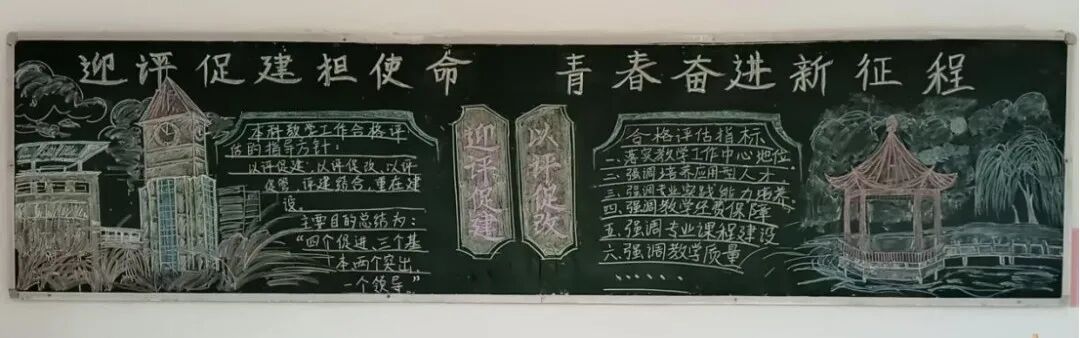 为全力做好本科教学工作合格评估迎评工作,凝聚全院师生迎评促建的共识与力量,营造“人人关心评估、人人参与评估、人人为评估作贡献”的浓厚校园氛围,我院特开展“迎评促建担使命,青春奋进新征程”主题黑板报宣传活动。